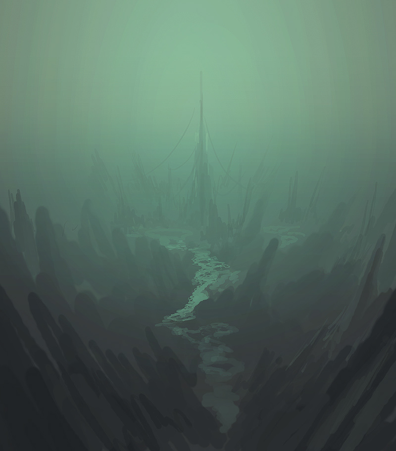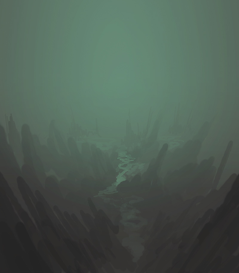 Process images for the image "Hidden City" - created for my second book to demonstrate loose painting.