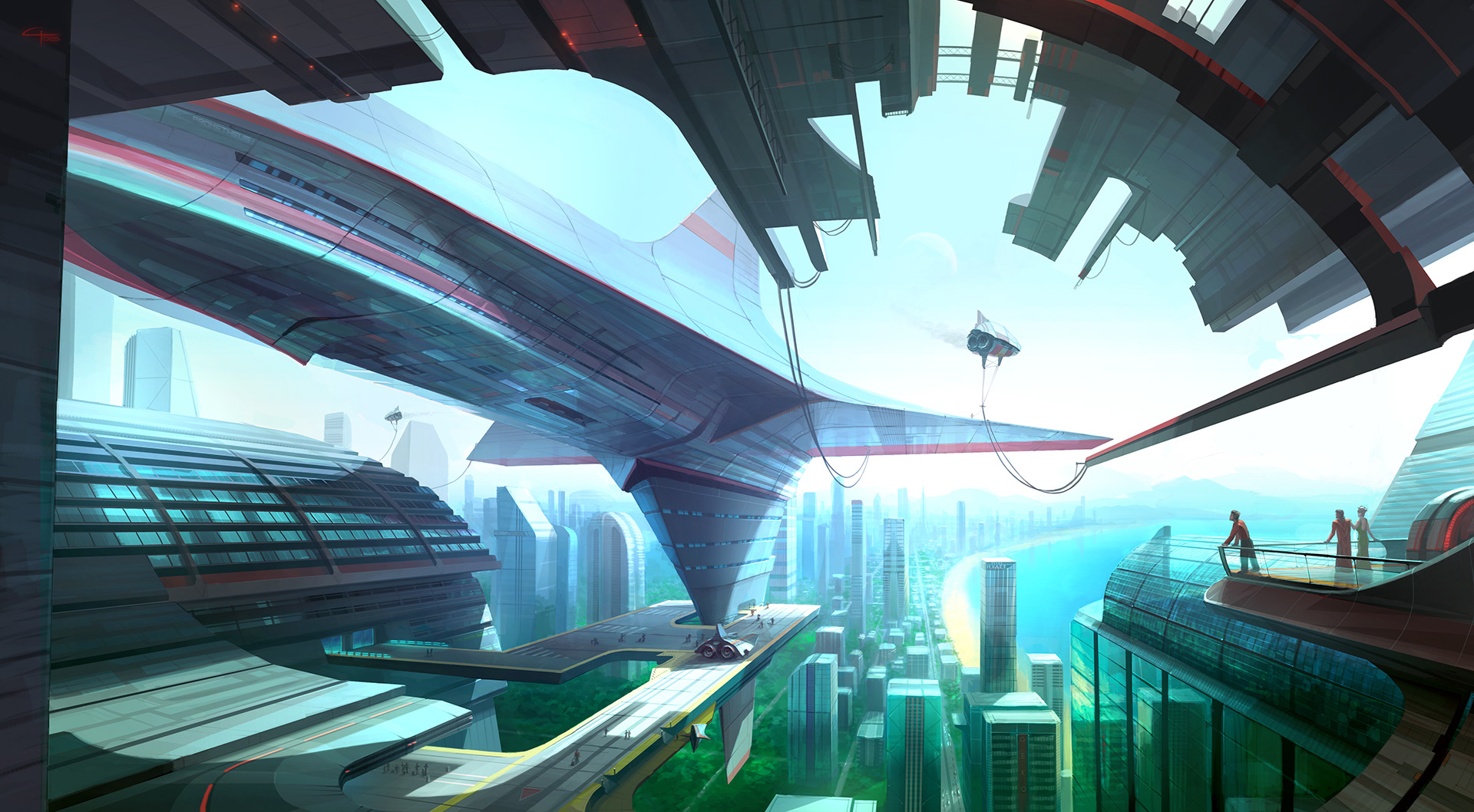 A craft for interstellar tourist travel is being boarded sometime in this worlds future.